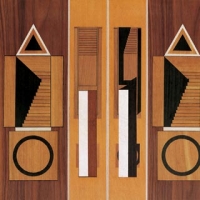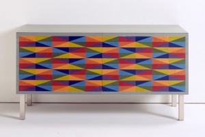 The sideboards in the Intarsia collection are storage units transformed into paintings. A mosaic of different woods combined with each other to reproduce the artist’s original drawing. Thirty-three numbered and signed versions of each drawing are reproduced.