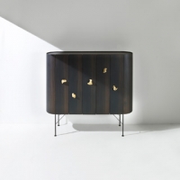 Collectionist Design is inspired by the secretaire of last centuries: a furniture which contains, organizes and conserves items and documents in its internal little spaces. The wall unit is an invitation to touch the rounded surfaces and appreciate the bronzed handles which give to this piece an artistic value.